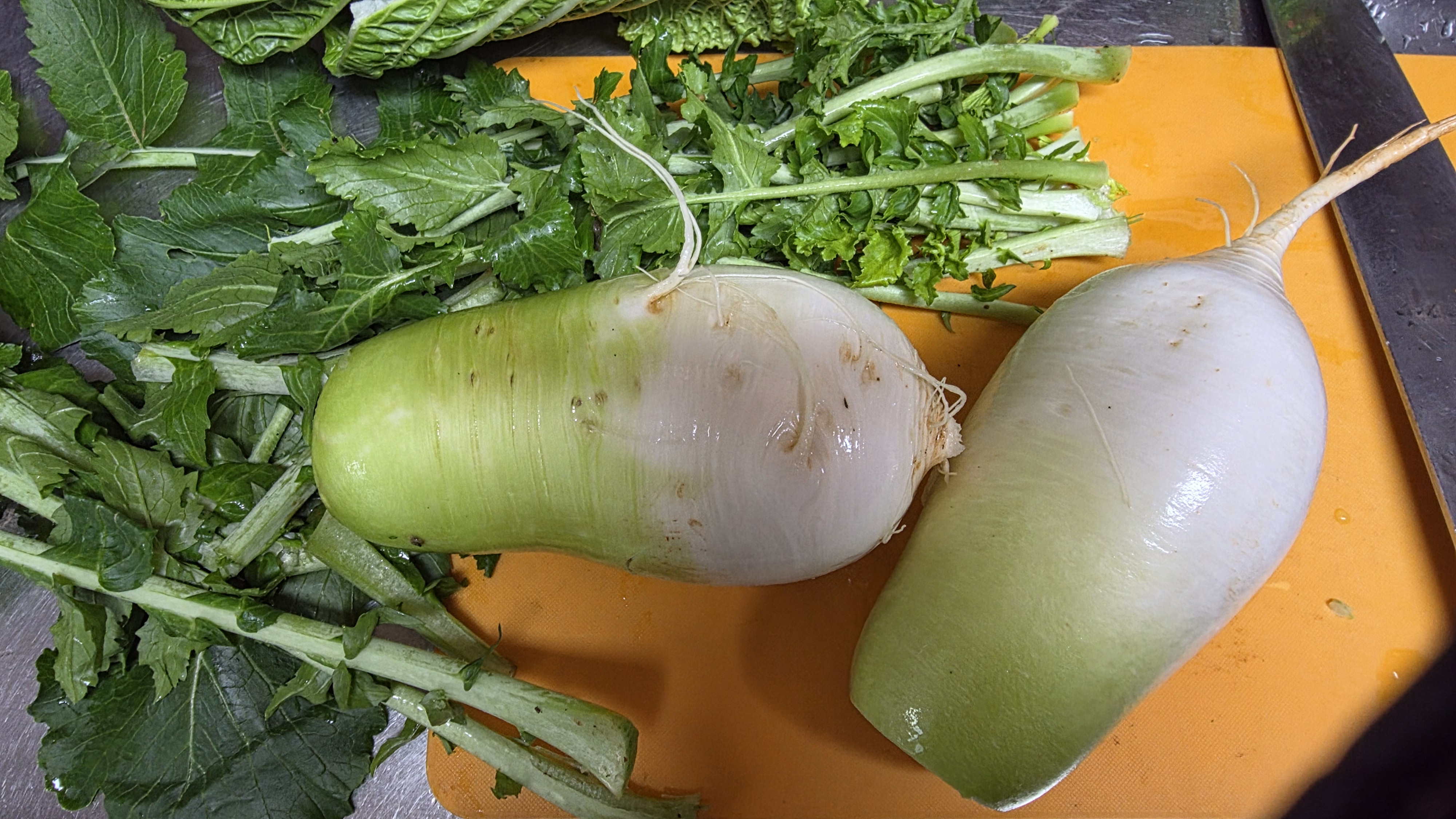 무 반토막 채 썰고 세꼬시 반 도시락 미나리 조금 준비했습니다.