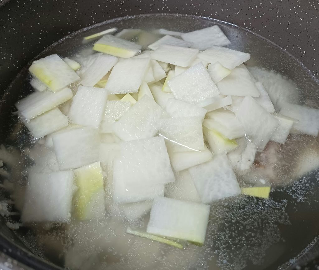 무우를 얇게 썰어서 넣어요