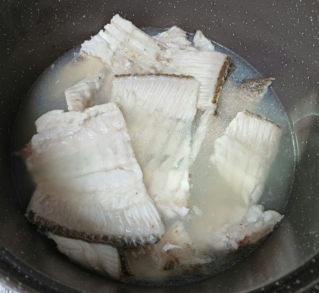 뼈도 마찬가지로 데쳐냄니다