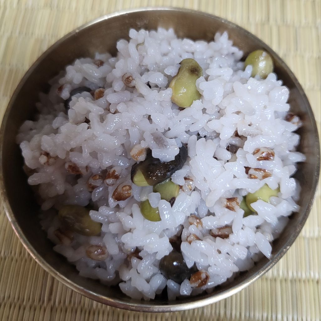 따끈하게 콩밥지어서 박지애님 흑밀도 넣었지요.