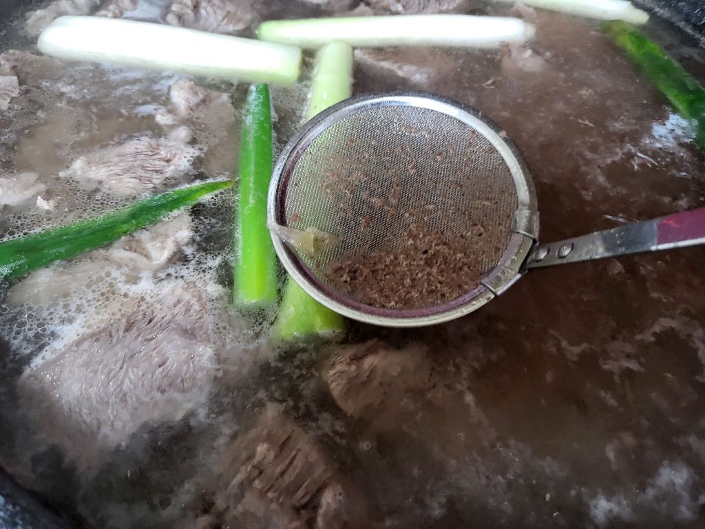 건져 올려요 둥둥뜬 기름도 걷어 내주죠.