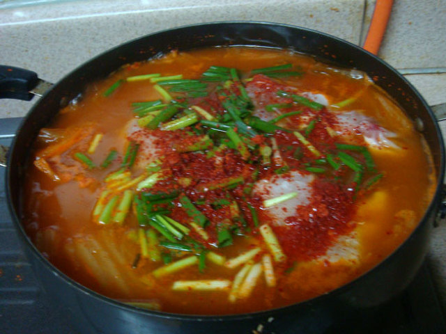 주고묵은지가 물렁하게익고 국물이 팔팔끓을때 손질한 물곰을 살살넣어 요 양념은 걍 집에있는거 대충넣어줜네요 곰치는 묵은지맛으로 개운하게 후룩후룩 먹는맛이 일품이죠~~ 요즘엔 넘바빠서리 대충대충 끼니때우고 삽니데이~~울랄라~ 한잔 하시것씀니까???