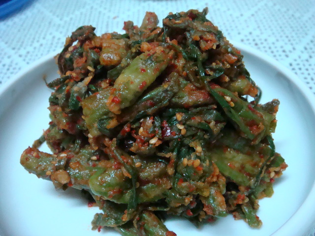 요고이 냉장고에서 말라가고있던 꽈리고추~~양이부족해 정구지조금뜯어다 밀가루 멍울멍울 무쳐가 살짝쪄서 양념간장에 무쳤는데 구수하니 딱 시골반찬이네요~~식은담에 꼭!!양념해야 제맛이 납니데이~쫀득하니~