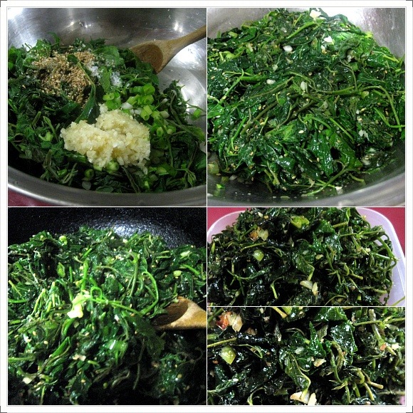 다진마늘,파,집간장,소금,후추,깨,들기름,매실효소으로 조물조물 무쳐둡니다...