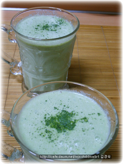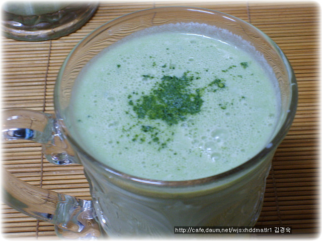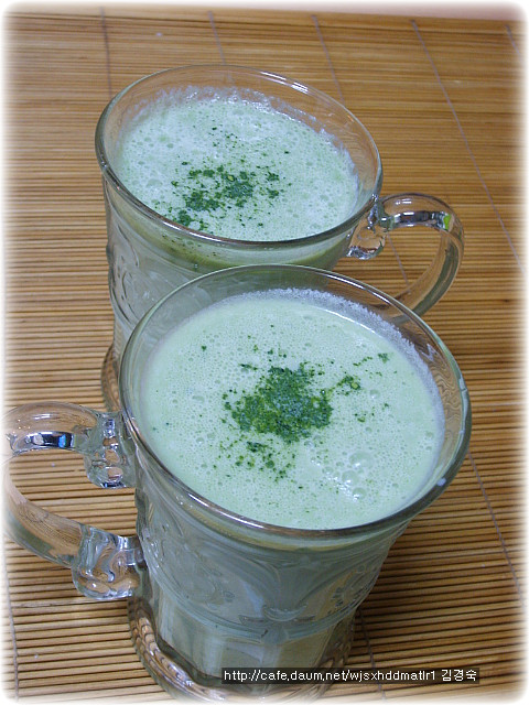 우유 2컵에 감자 1개(중간크기) 꿀 약간, 녹차 1작은술을 넣고