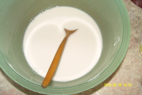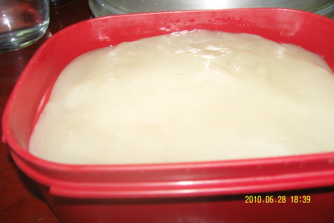 3컵의 물을 부어 1시간 이상 담가 두면 가루가 멍울이 없습니다