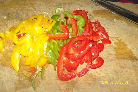 여러가지 고운색의 파프리카로 고명을 만들고