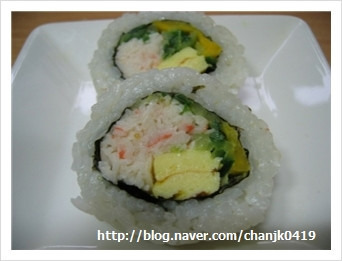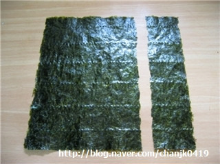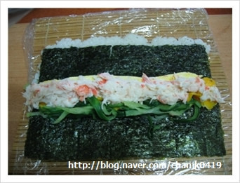 왜일까요? 뒤집어서 롤을 싸면 앞부분의 김과 뒷부분의 밥이 만나서