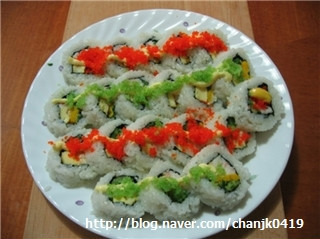 손님도 초대해서 음식을 만들었는데.....제가 속한 복사단에서는 캘리포니아 롤을 만들었답니다.