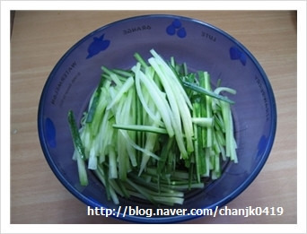 돌려까기한 오이를 체 썰어 주세요....
