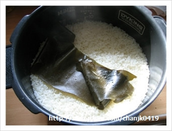 밥은 30분 정도만 담구었다가 청주와 다시마를 넣고 중간밥으로 했어요.