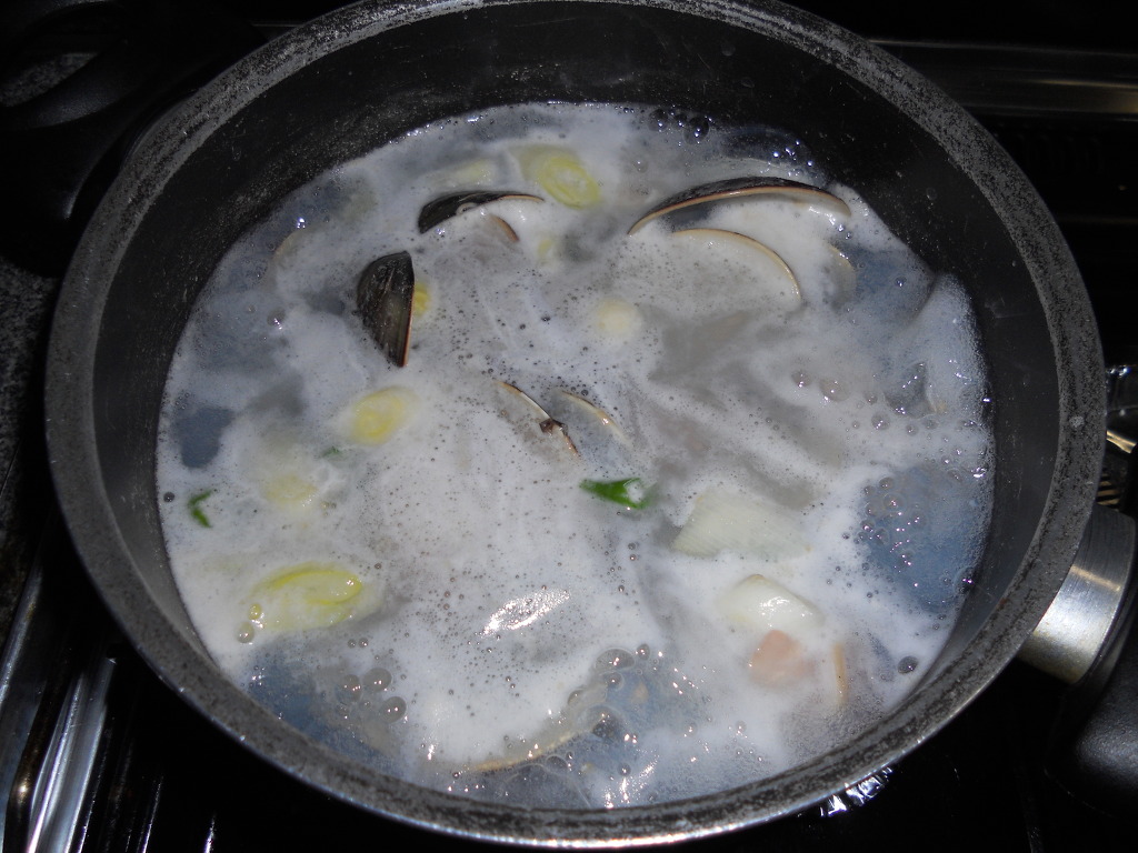 재래시장에 갔더니만 백합조개를 팔더라고요... 만원에 몇개안되는것을 ... 파전에다가 넣어먹을까,아니면 된장찌게에다 넣을까를 생각하다가 제일쉬운 조개탕으로 결정 했습니다.