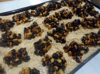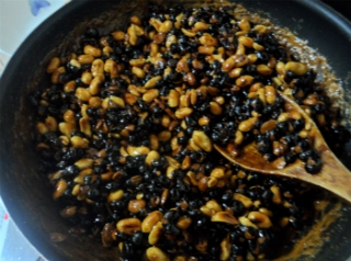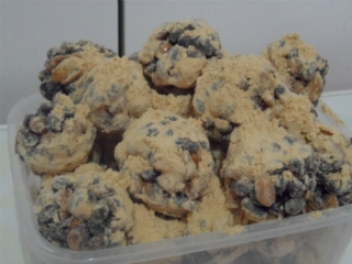 최연순님께 구매한 생땅콩을 가지고 간식을 만들어보았습니다. 저희 신랑은 볶은 땅콩을 좋아하고 전 삶아먹는 땅콩을 아주 좋아합니다..^^ 보내주신 땅콩이 너무 맛있습니다. 친정집에서 얻어온 검은콩은 뻥튀기아저씨에게 볶아서 가져와 쌀조청 만든거 더 고아 엿으로 만들고 거기에 땅콩볶은거와 검은콩볶은거 섞어서 콩가루 묻혀 굴렸더니 정말 달지도 않고 너무 고소한 땅콩엿(?)이 완성되었네요~ㅋㅋㅋ