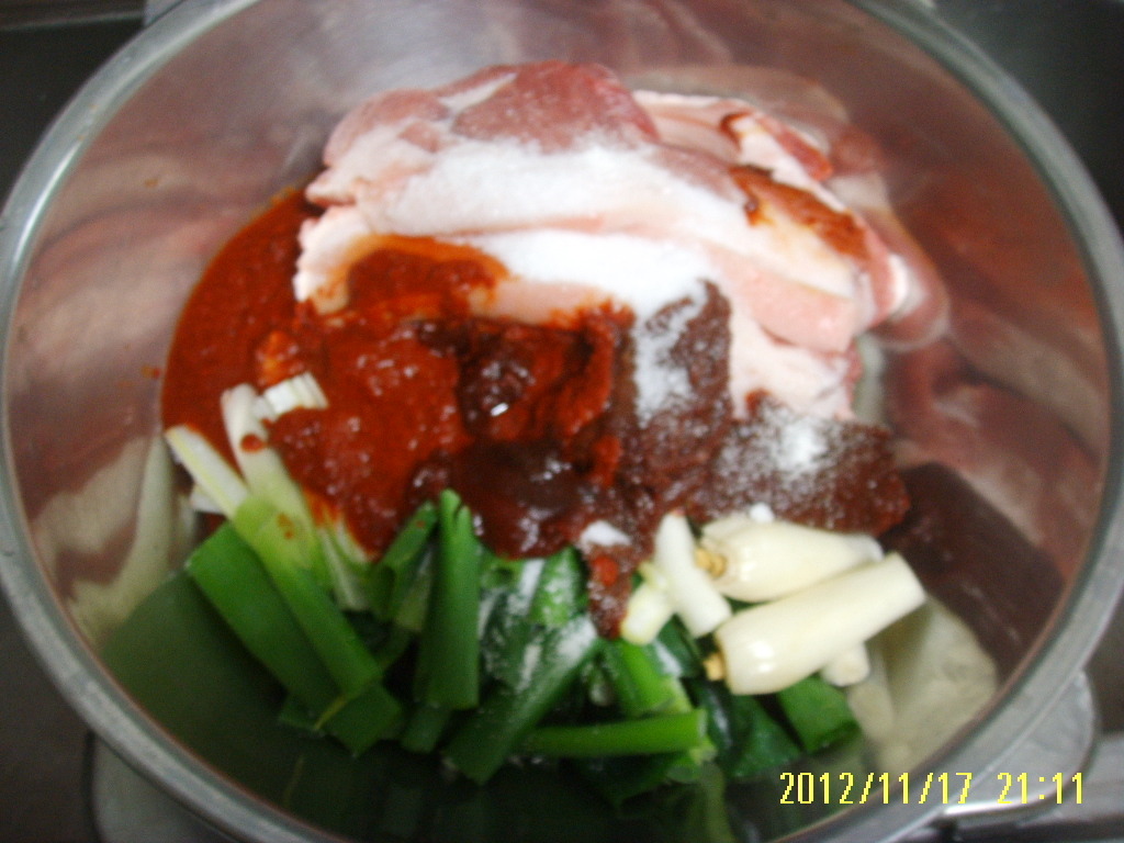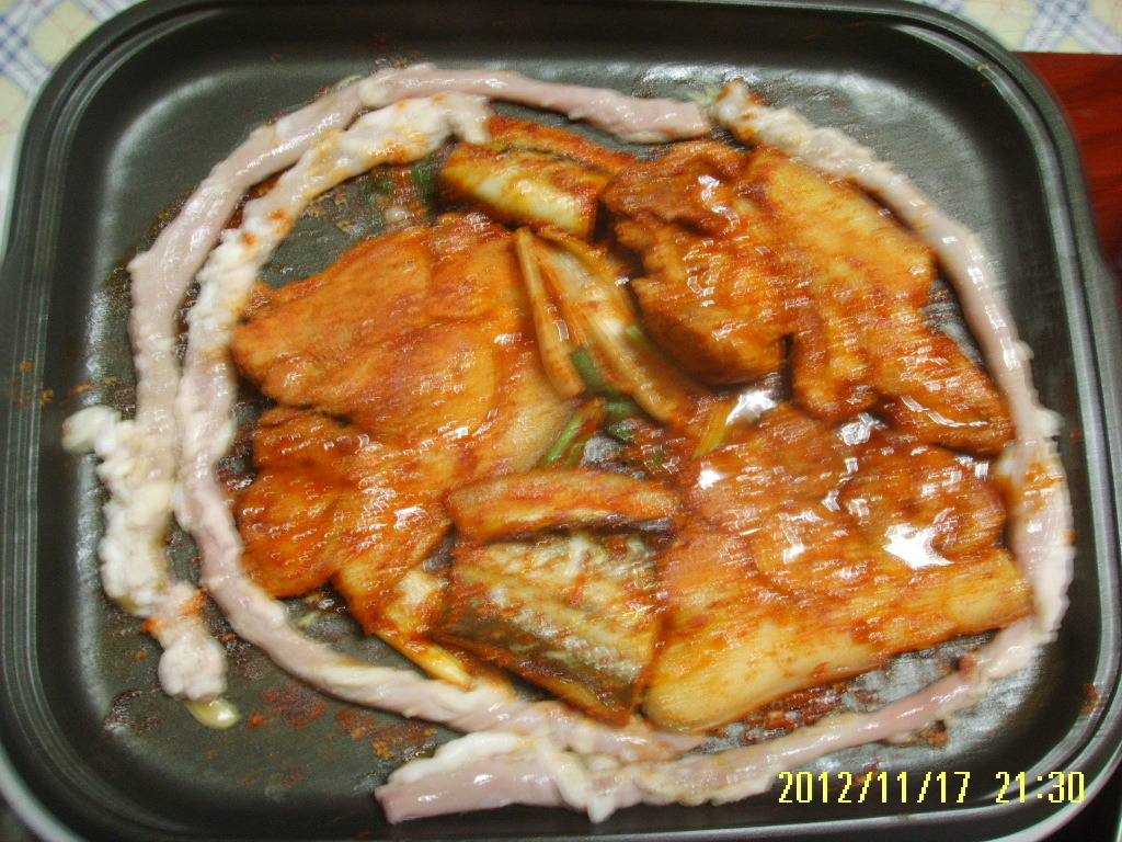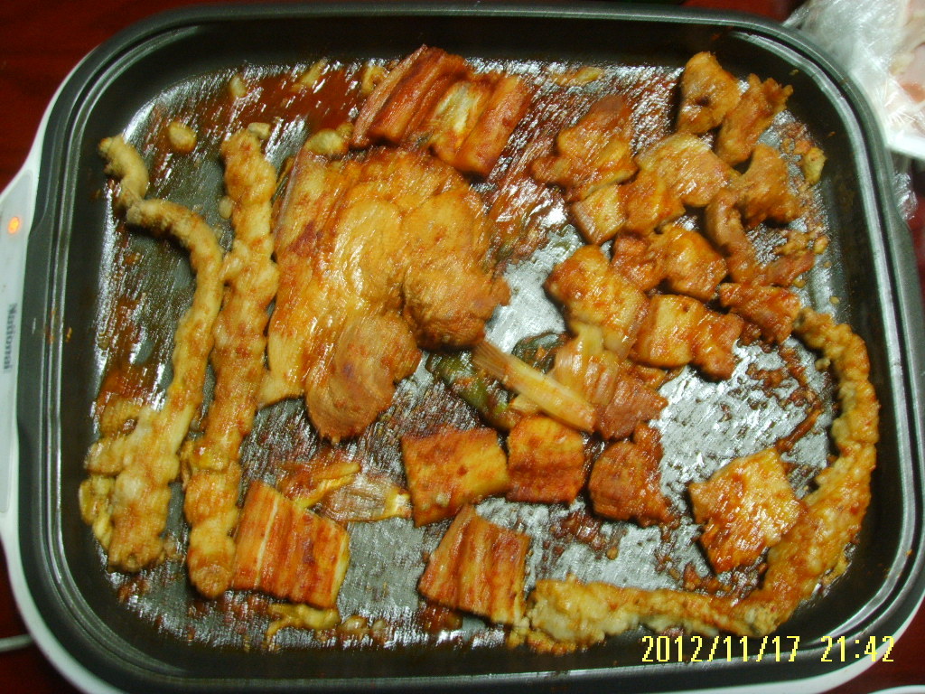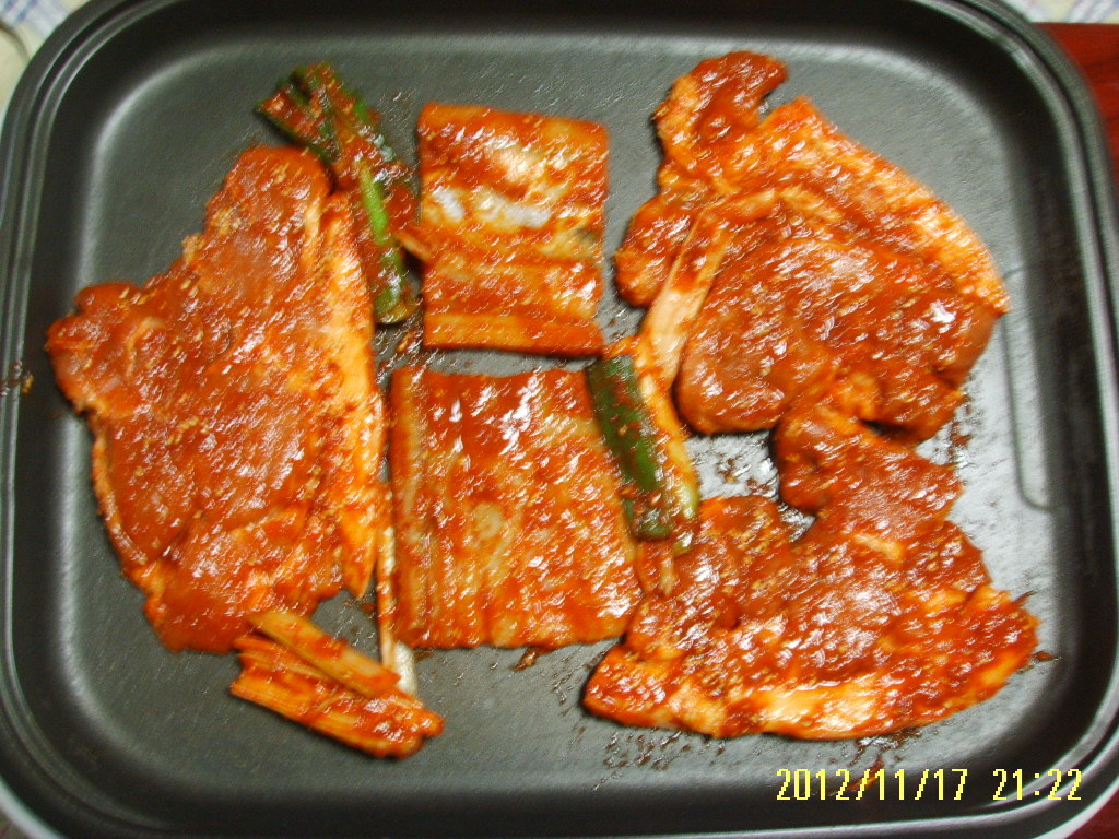 우리 집에서 즐겨먹는 일명 고추장 삼겹살인데.