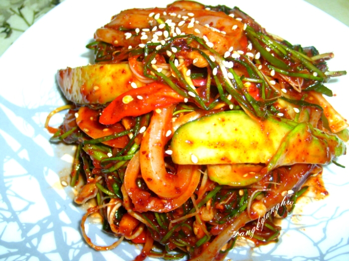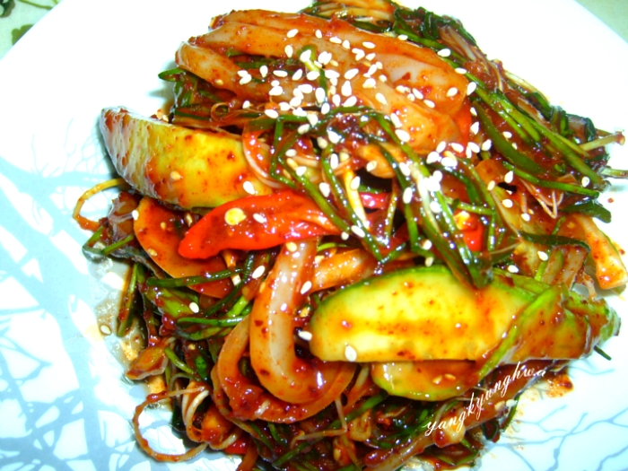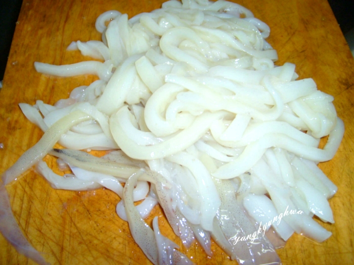 생 오징어가 신선한 야채와 양념에 어우러지니 새콤달콤 맛있네요..