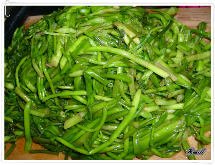미나리를 잘 다듬어 깨끗이 씻어 놋수저를 넣어 1시간 정도 담가 두었다가..