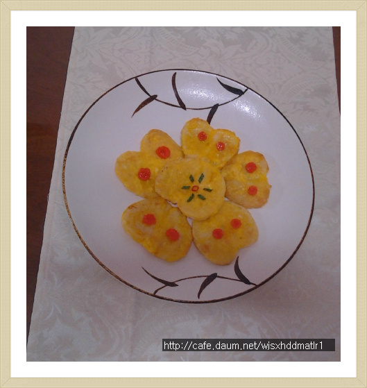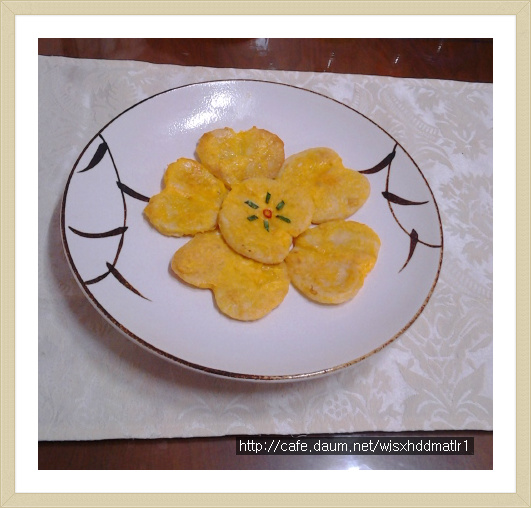 작성자박정희(신림) 작성시간 13.05.16 아주 이쁘게 만드셨군요. 관자를 저리 색을 내서 전을 부치니 하트같이 아주 이쁘군요.