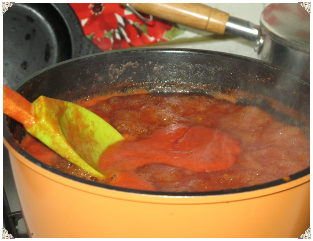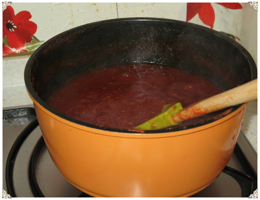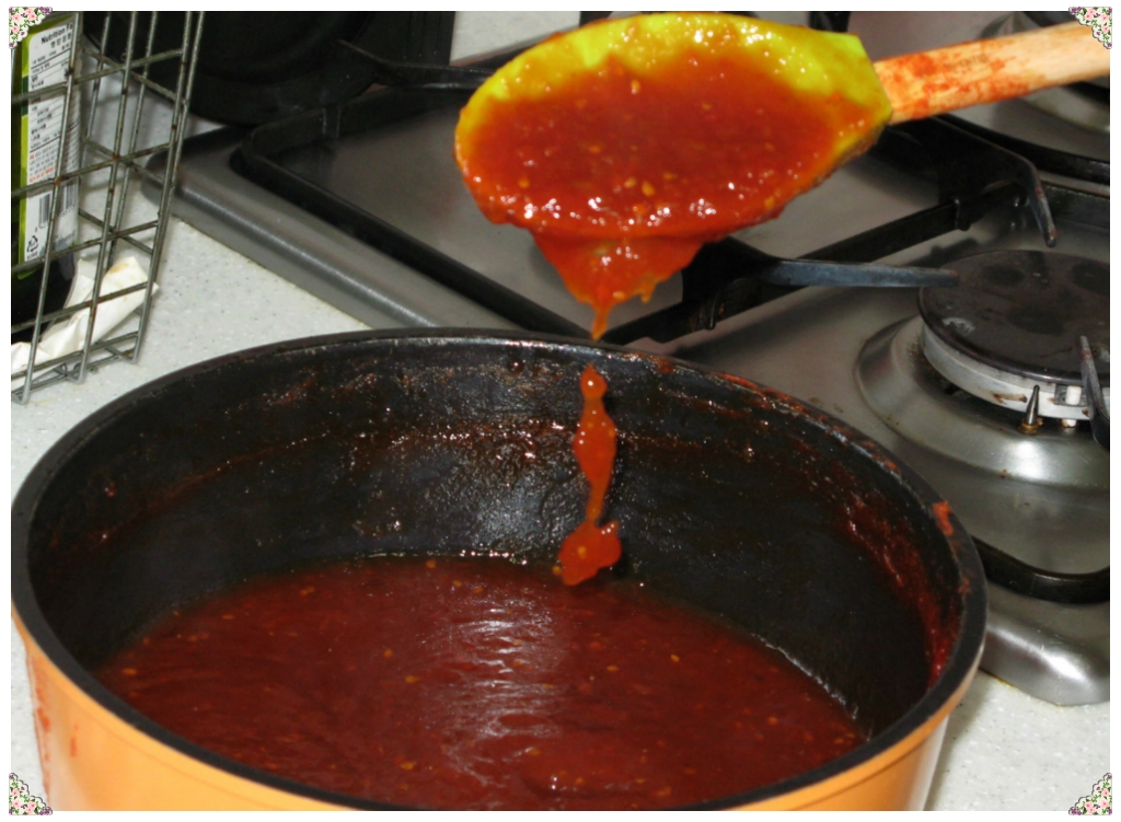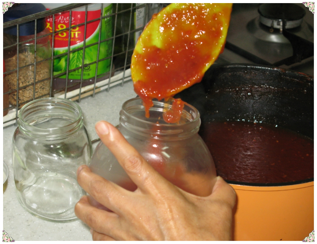 2시간동안을 끓여주니 요래 예쁘게 색상도 이쁘고 맛깔스러운 토마토쨈이 탄생하려는순간입니다.