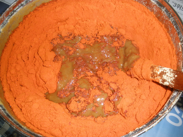어느정도 식었을때..고추가루를 넣었습니다...