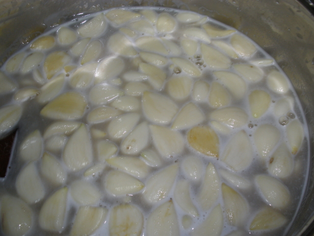 마늘을 갈아서 할까 하다가 엿질금물에 삮고 끓이면 물러질것 같아서
