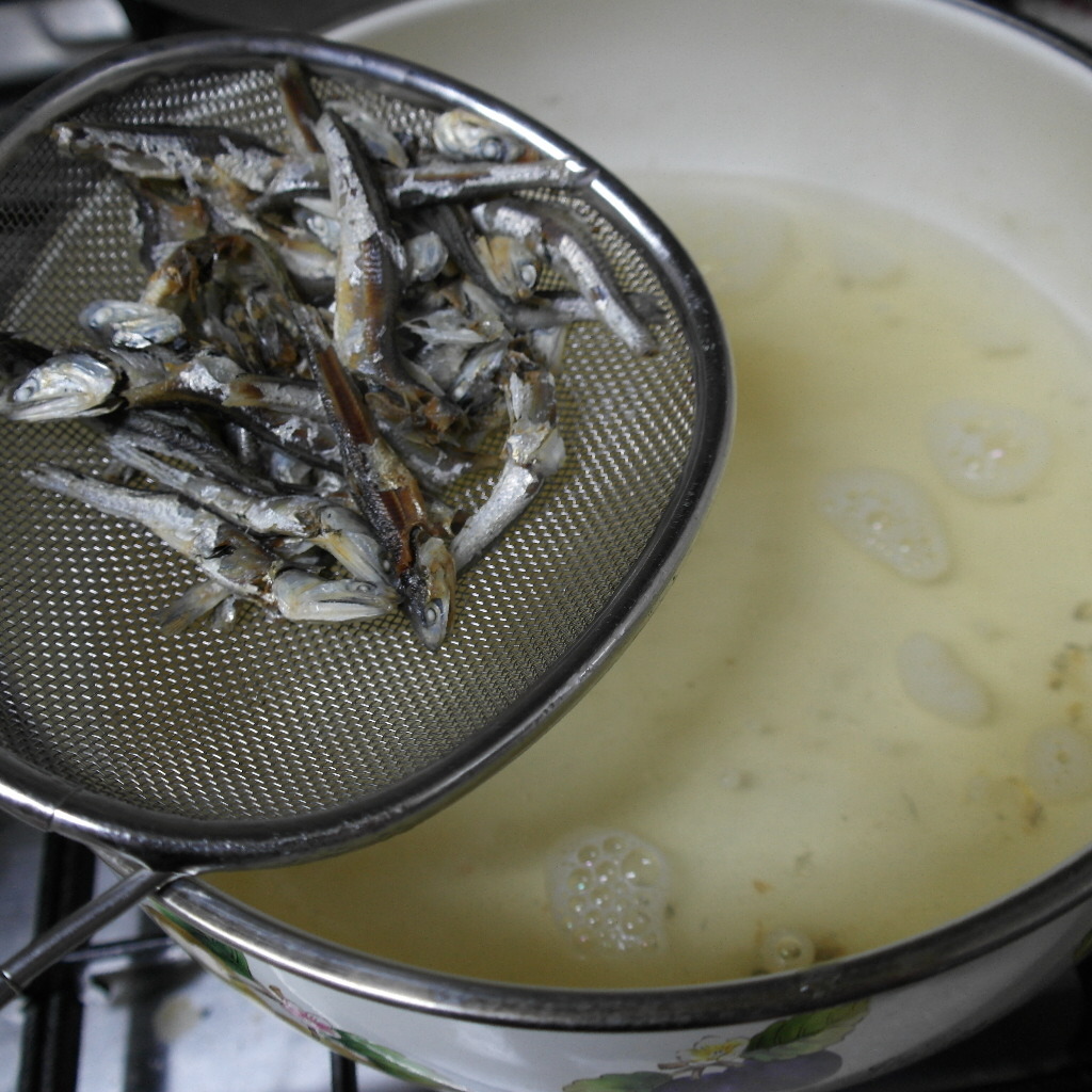 국멸치는 물이 끓을때 넣고 10분정도에 걸러 냈습니다~