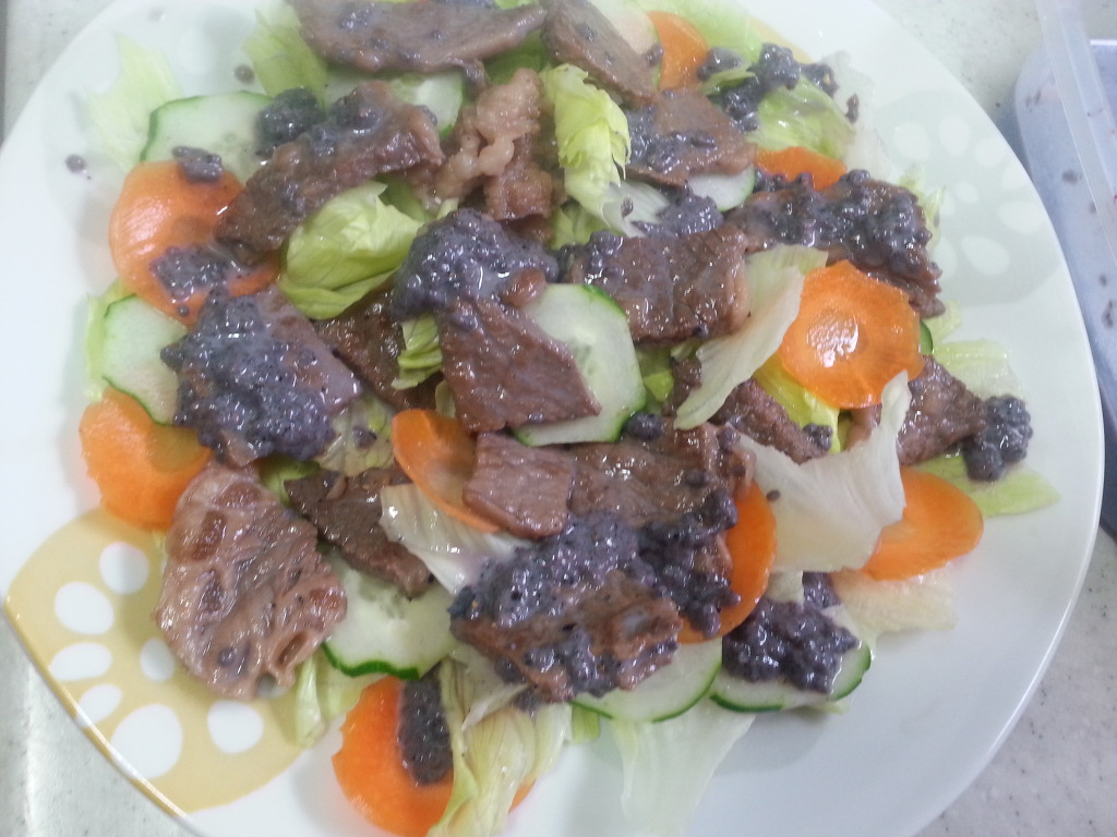 양상추.당근.오이.소고기.아로니아를 올려서 소스를 뿌려 주지요~