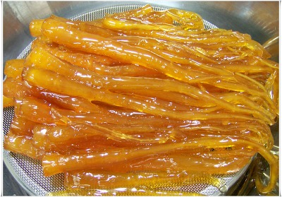 쌉싸름하면서 쫄깃 졸깃한 도라지 정과 입니다.