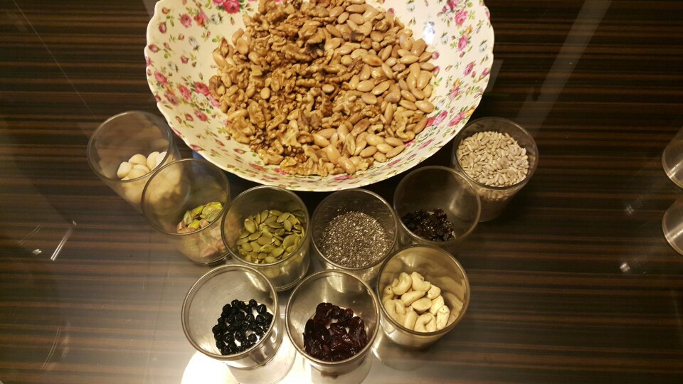 건블루베리, 건포도, 마다카다미아, 호박씨, 캐슈넛, 해바라기씨, 치아시드, 건크랜베리, 피스타치오