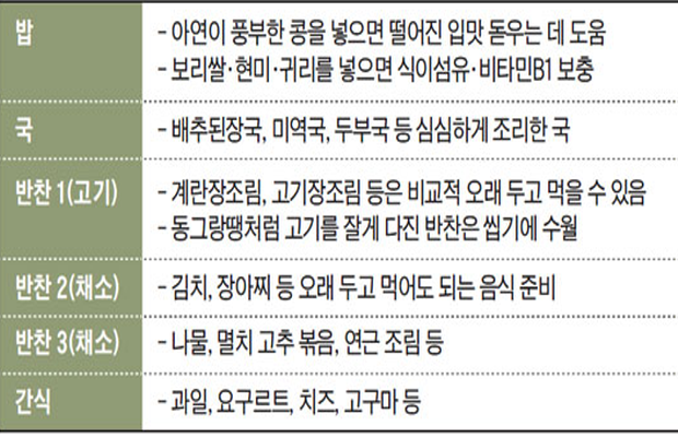 매 끼니마다 밥을 짓기 힘들다면 가끔 국수나 식빵으로 대체해도 괜찮다. 한 끼에 국수를 한 대접(90g) 먹거나, 식빵을 세 조각(100g) 먹으면 밥 한 공기(210g)를 먹을 때만큼의 탄수화물을 섭취한다.