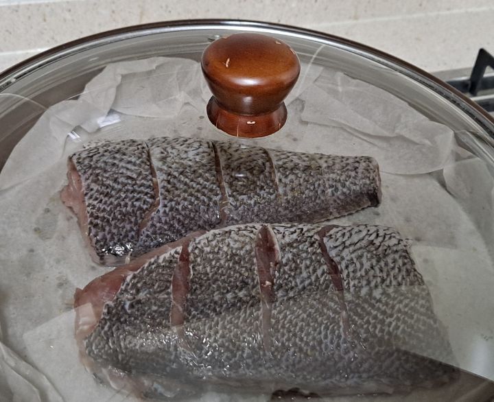 찜기에 종이호일 깔고