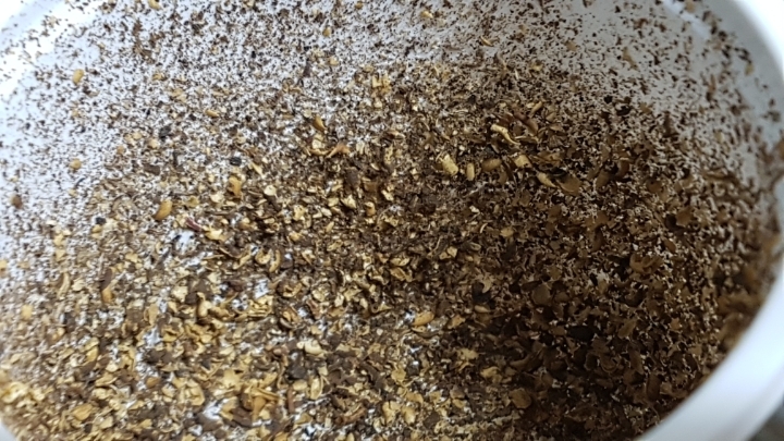 통의 벽에 붙어있는 산초가루를 떼어내려해도 딱 달라붙어서 떨어지질 않습니다.