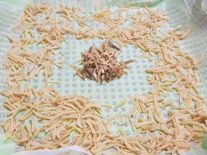 똑같은 끓는 소금물에 살짝 데쳐서 똑같은 방법으로 맑은 날씨에 바싹 말렸는데 색이 다릅니다.