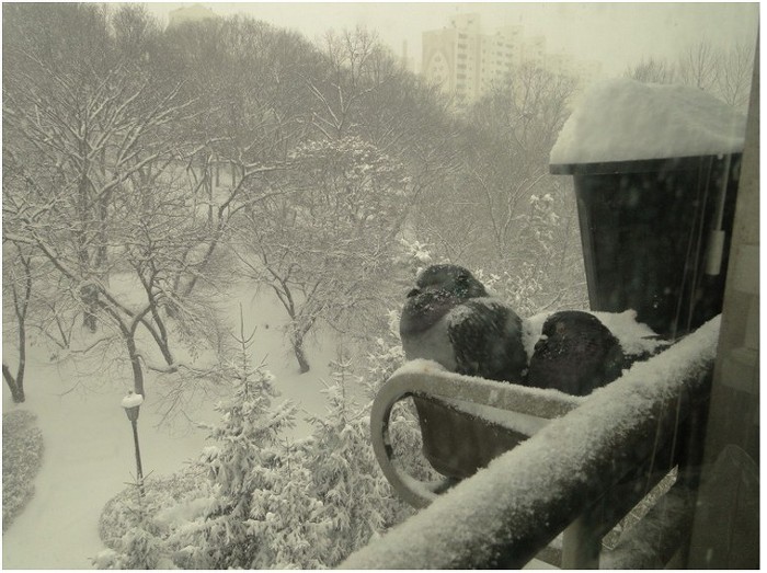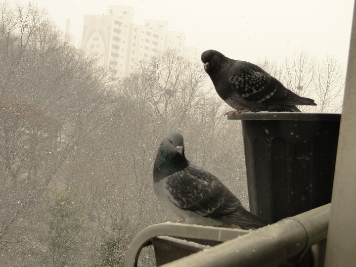 비둘기가 종일 저 많은 폭설을 다 맞고 있더군요..