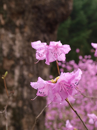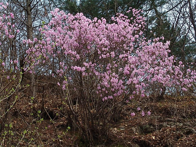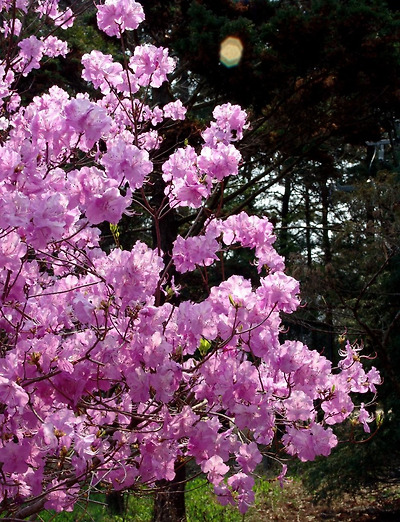 진달래는 확실히 아름다운 나무다. 양지바른 곳에서 잘 자란다. 진달래가 많은 땅은 그만큼 땅이 척박한 곳이다. 강 산성 토양에서도 견디는 수종이 바로 진달래과 식물이다. 다른 수종이 척박지를 피해 기름진 땅에 뿌리를 내리지만 진달래는 오히려 붉은 색채가 더욱 짙어져 동국의 봄을 장식한다.