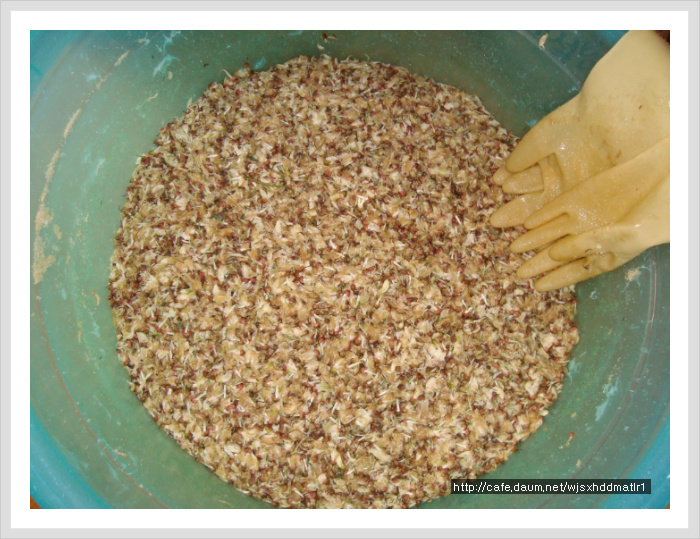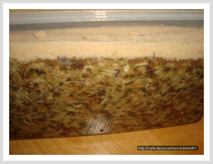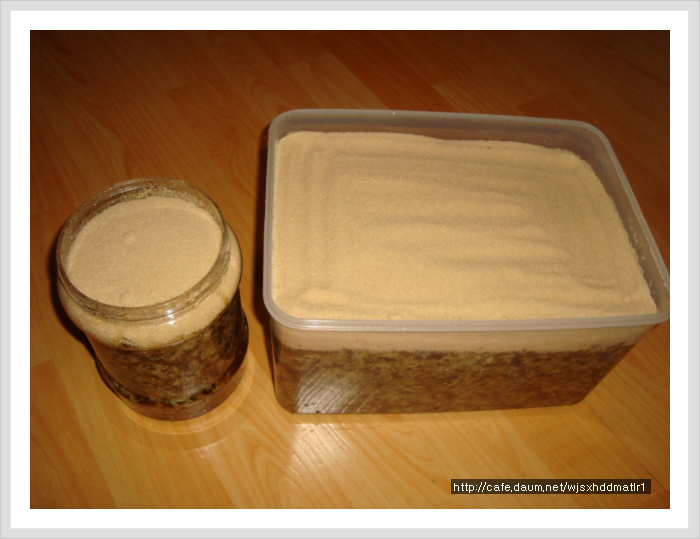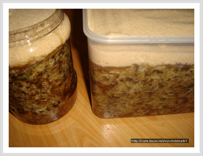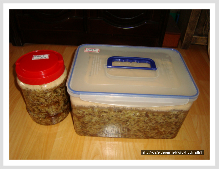 항아리는 다 써 버리고 없어서 어쩔수없이 통에 담았네요.
