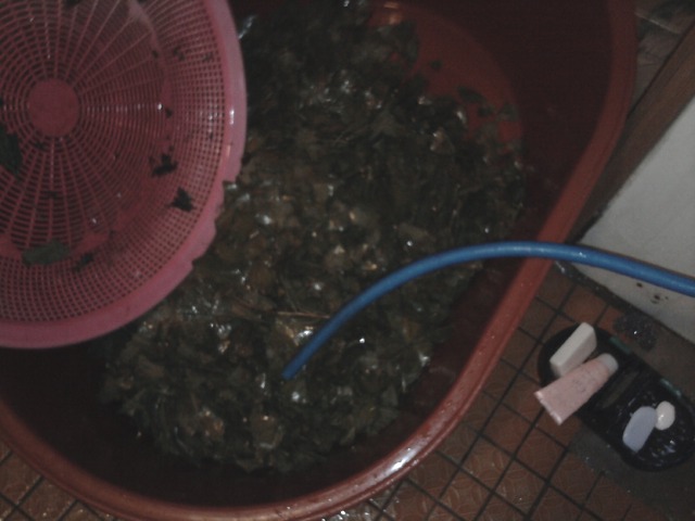 4일간 절여놓은 은행잎 2일간 맑은물에 담금니다 하루에한번 물갈이해야해요