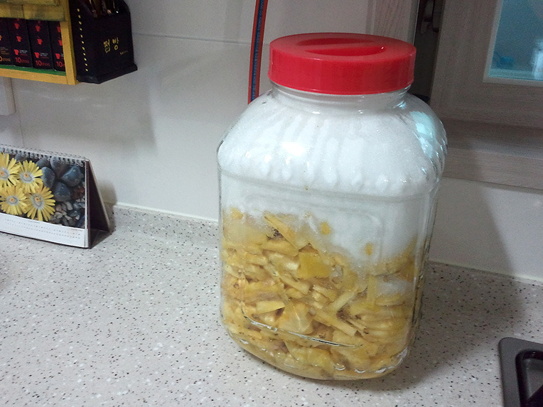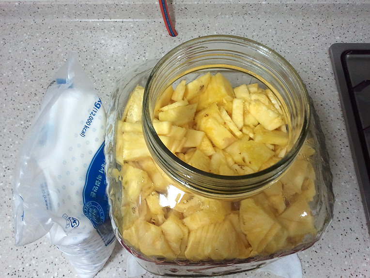 여태...갈색설탕으로 효소 담궜는데 이번 파인애플효소는 처음으로 하얀설탕으로 담궜어요