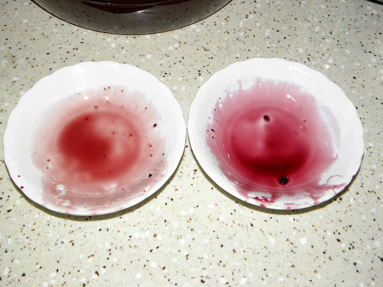 두가지의 색차이가 나지요... 같은 설탕을 사용했고 과육과 설탕 무게도 같이 들어갔었지요.