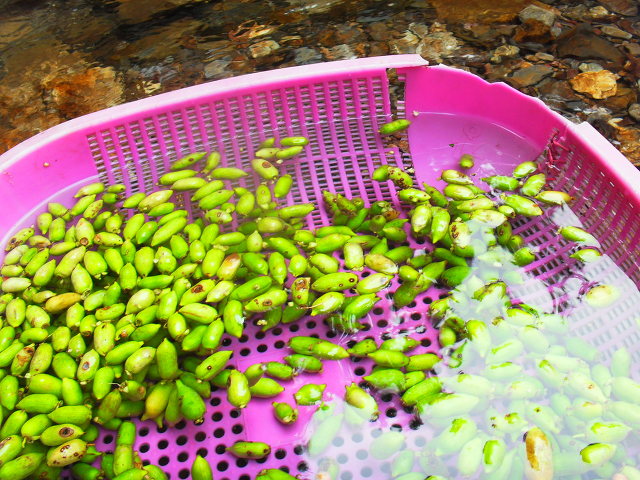 집에도착해 흐르는 집앞 개울에서,,깨끗하게 씻어서,,