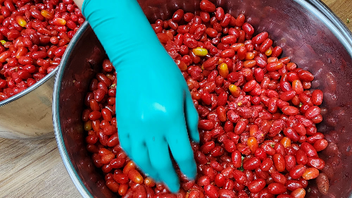 보리수 발효액을 만드는 건 아주 간단합니다. 가장 기본이 되는 건 ‘같은 양의 보리수와 설탕’을 준비하는 겁니다. 예를 들어 보리수 2kg 이면 설탕도 2kg을 준비하세요. 열매는 꼭지를 제거하고 깨끗하게 씻은 후 물기를 충분히 말려야 곰팡이가 생기지 않습니다.