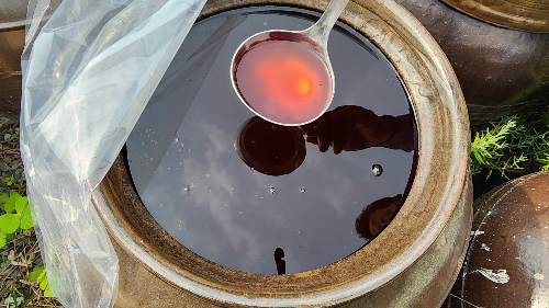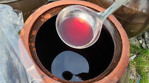 ▶ 최소 6개월~12개월 후, 맛과 향을 맡아보면 강한 신맛과 톡 쏘는 향이 나야 성공입니다.