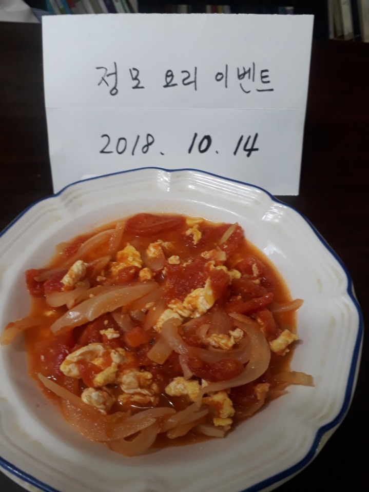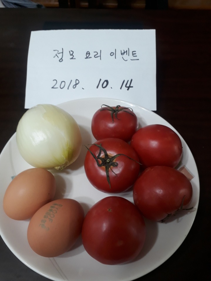 토마토, 계란, 양파, 소금과 후추약간, 올리브기름 참기름약간