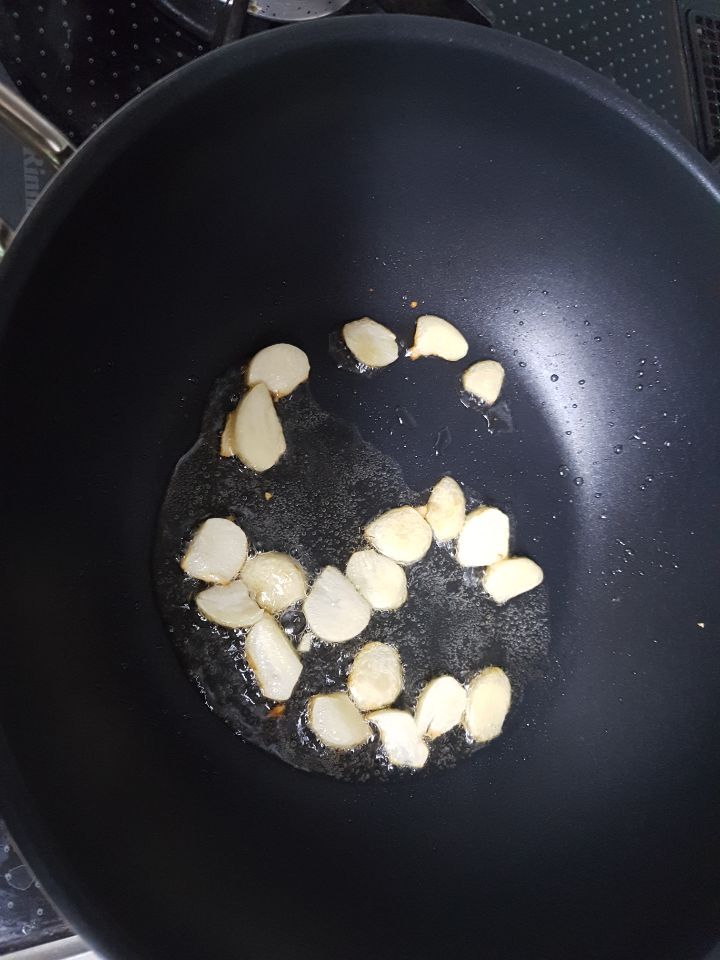 썰은 마늘 볶다가