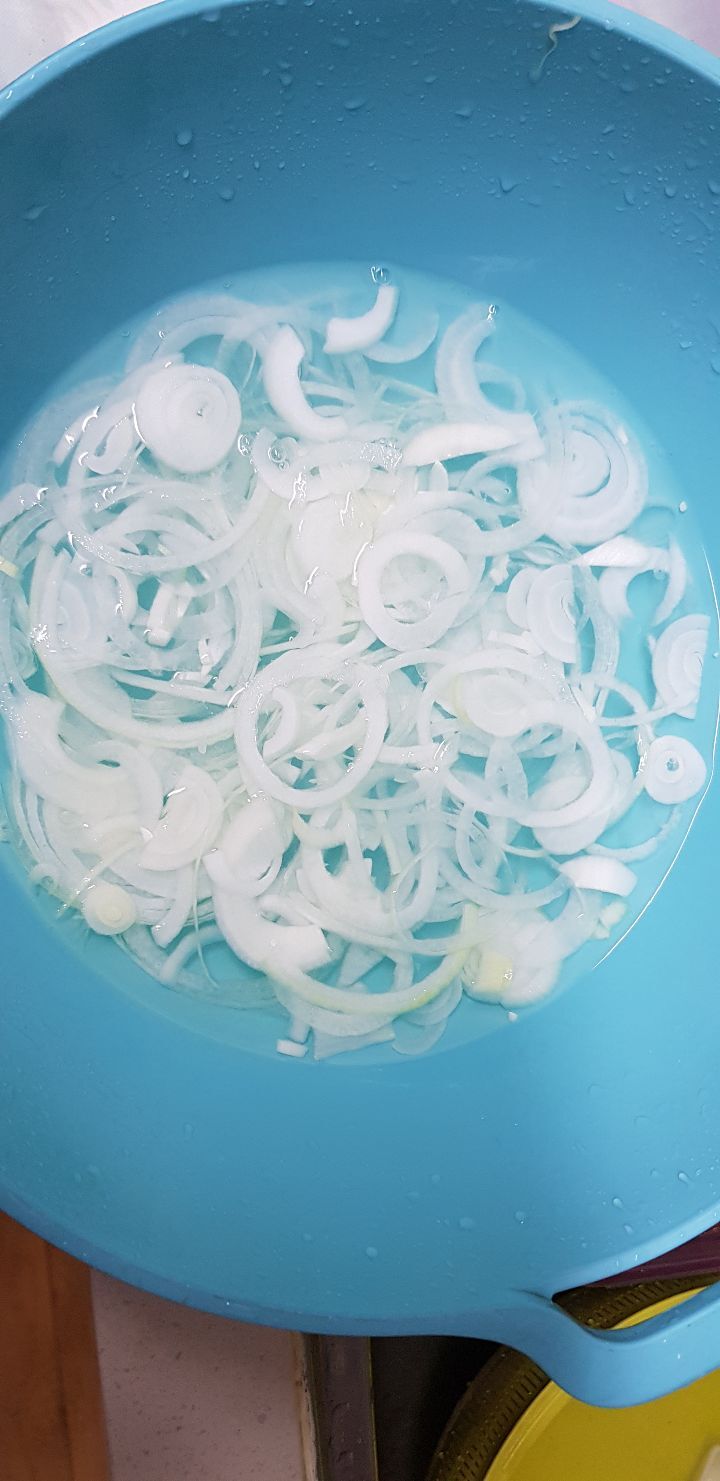 양파 다진 거와 슬라이스는 물에 담궈 매운 맛 빼서 건져놓아요