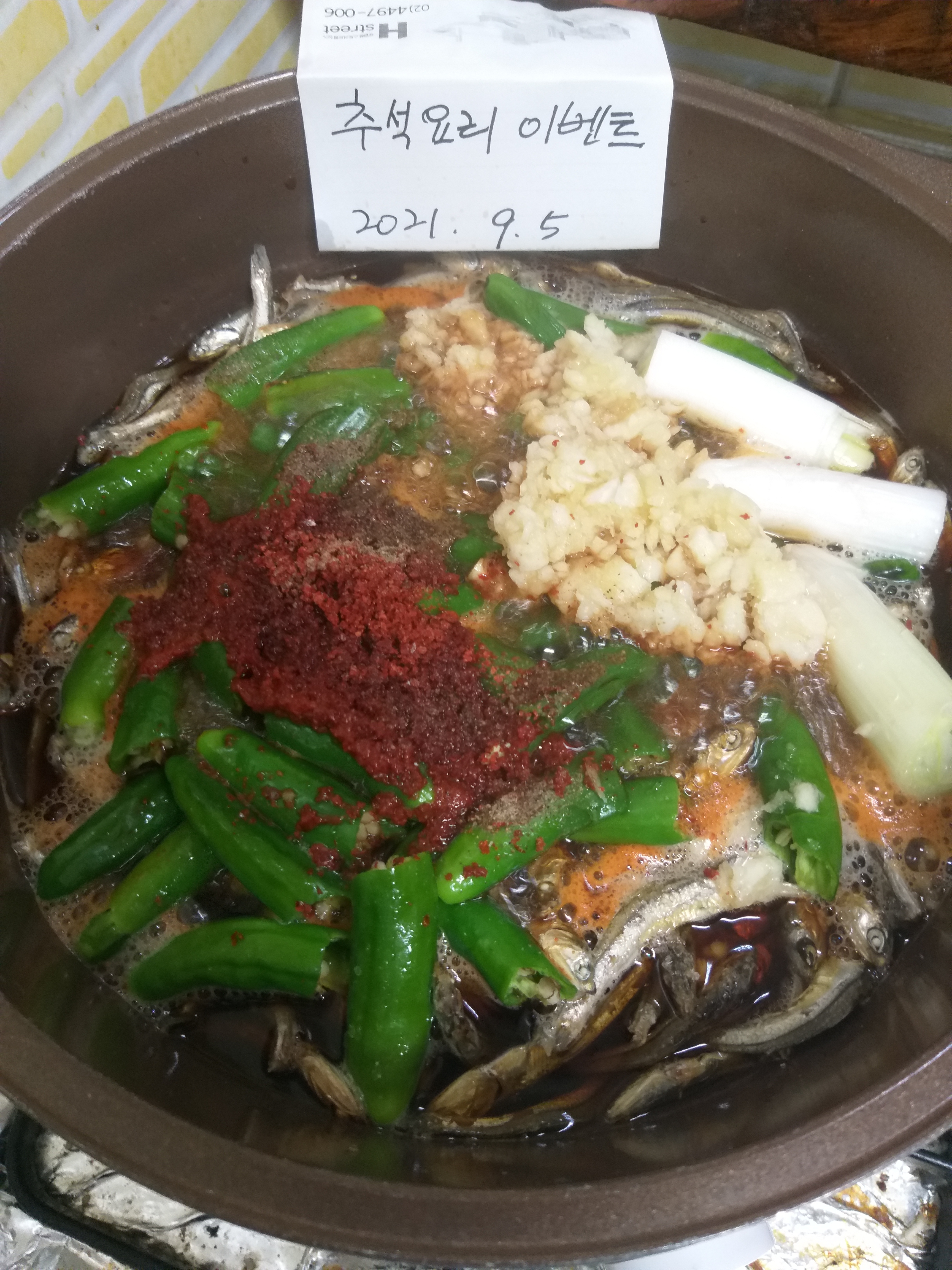 생멸치를 썰불에 살짝 뽘아서 잡내를 날려주고요