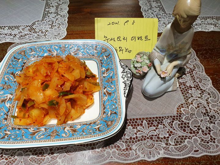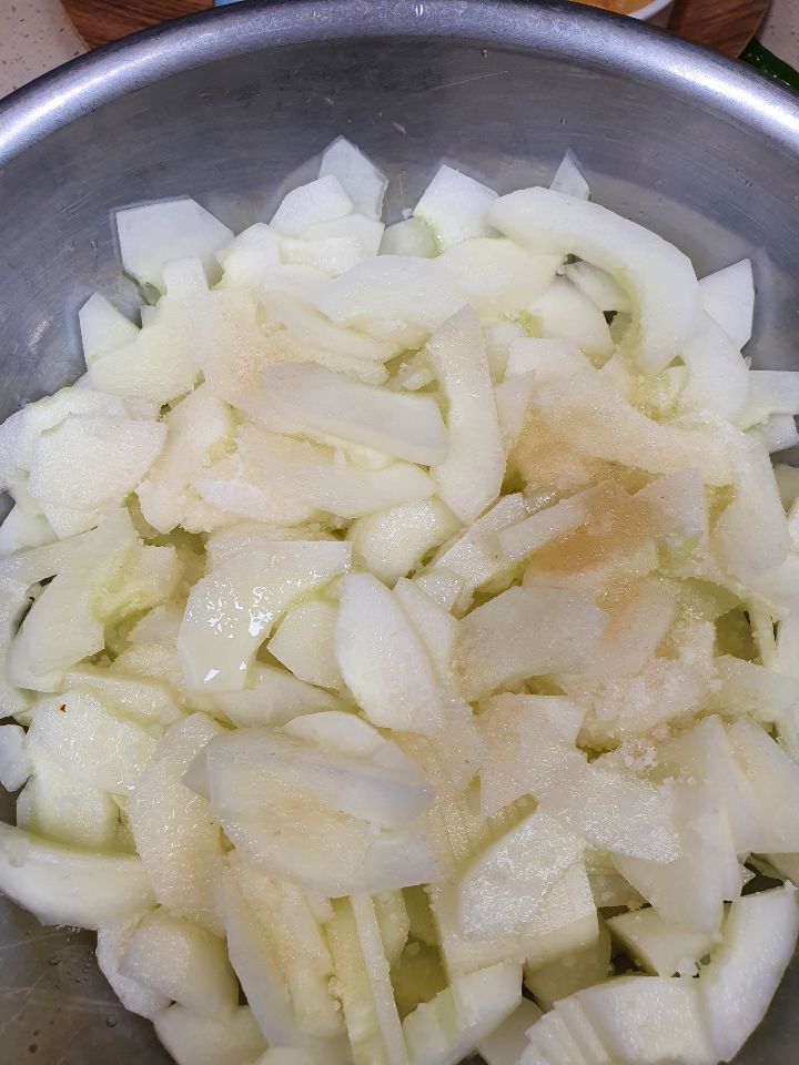 2...설탕ㆍ소금ㆍ식초를 넣고 20분정도절인후 물기를 꼭 짜준후