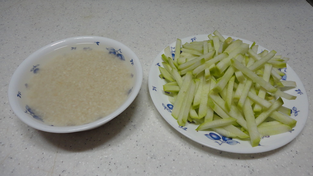 그릇에 담아놓으세요 무우를 넣고 쌀을 넣다보면 가늠이 잘안된답니다