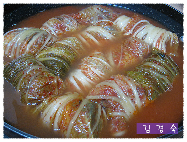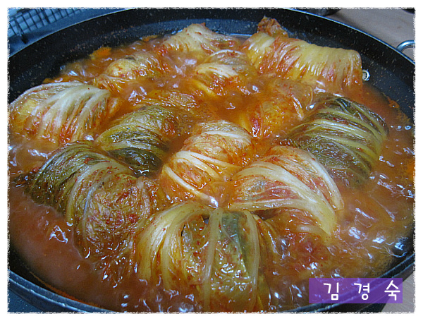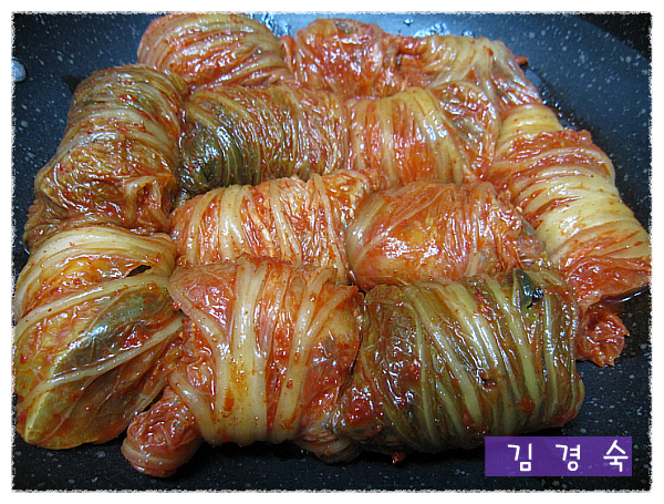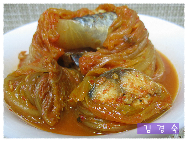 이렇게 김치에 고등어를 말아서 냄비에 놓습니다..