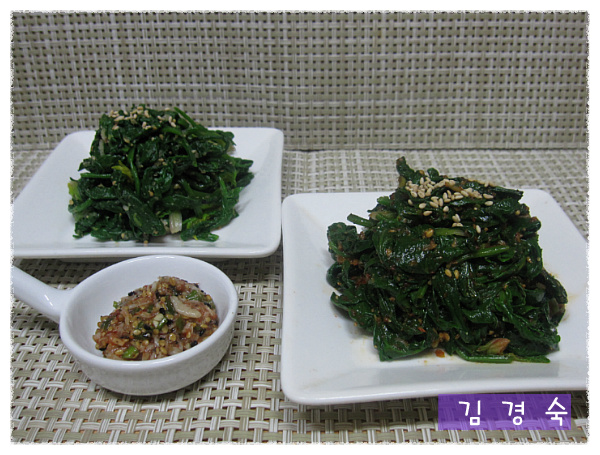시금치나물(소금과 고추장으로 무쳤어요..)과 새우젓무침