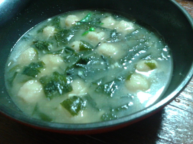 육수가 끓으면 갈은 감자를 동글동글하게 새알심처럼 만들어서 넣고 끓입니다.